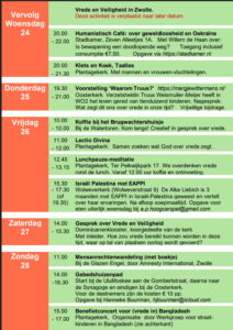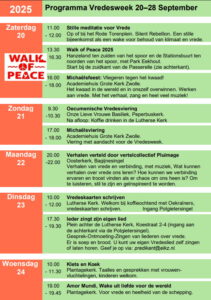 Nu is de Vredesweek van 2025 georganiseerd. Op de Flyer kun je alle activiteiten vinden.