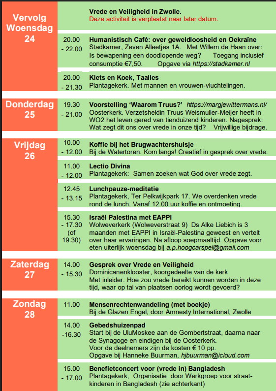 In Zwolle zijn er in de vredesweek van 20 t/m 28 september volop activiteiten waar je aan mee kunt doen.
