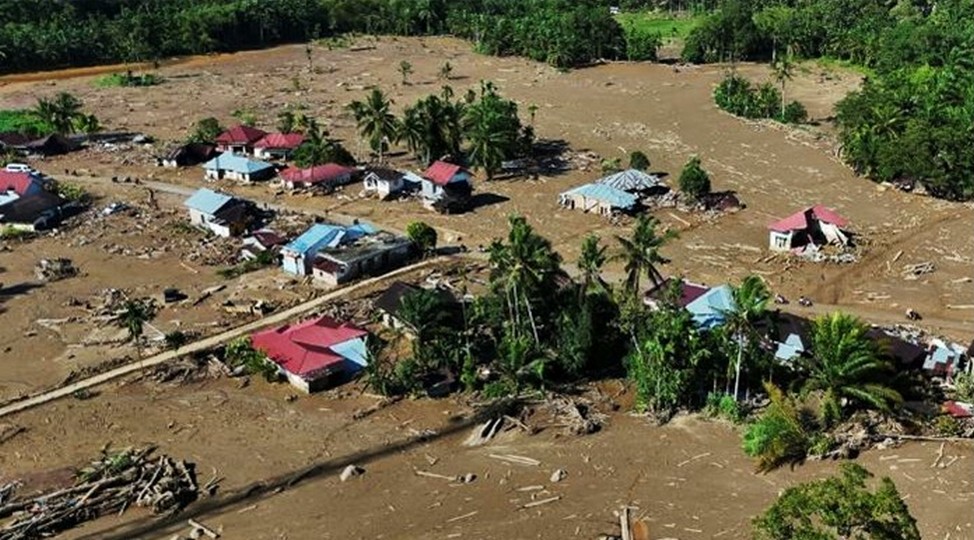 Waarom doen we deze actie? Eén voorbeeld van eind november: Deze luchtfoto laat de grote schade zien na de extreme overstroming in Palem-bayang West Sumatra, Indonesië. De Indonesische president Prabowo bracht vandaag een bezoek aan het noordwesten van Sumatra, beloofde de bevolking dat de schade zal worden hersteld en sprak ook over de opwarming van de aarde. “We moeten klimaatverandering doeltreffend aanpakken”, zei hij tegen de pers. Er zijn 1600 doden (verdronken) en honderdduizend gevlucht in Sumatra en omliggende landen.